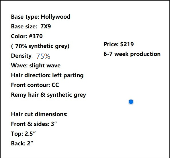 - The hair system is a stock item with no add-on services such as base cuts, haircuts, perming, or other modifications.
