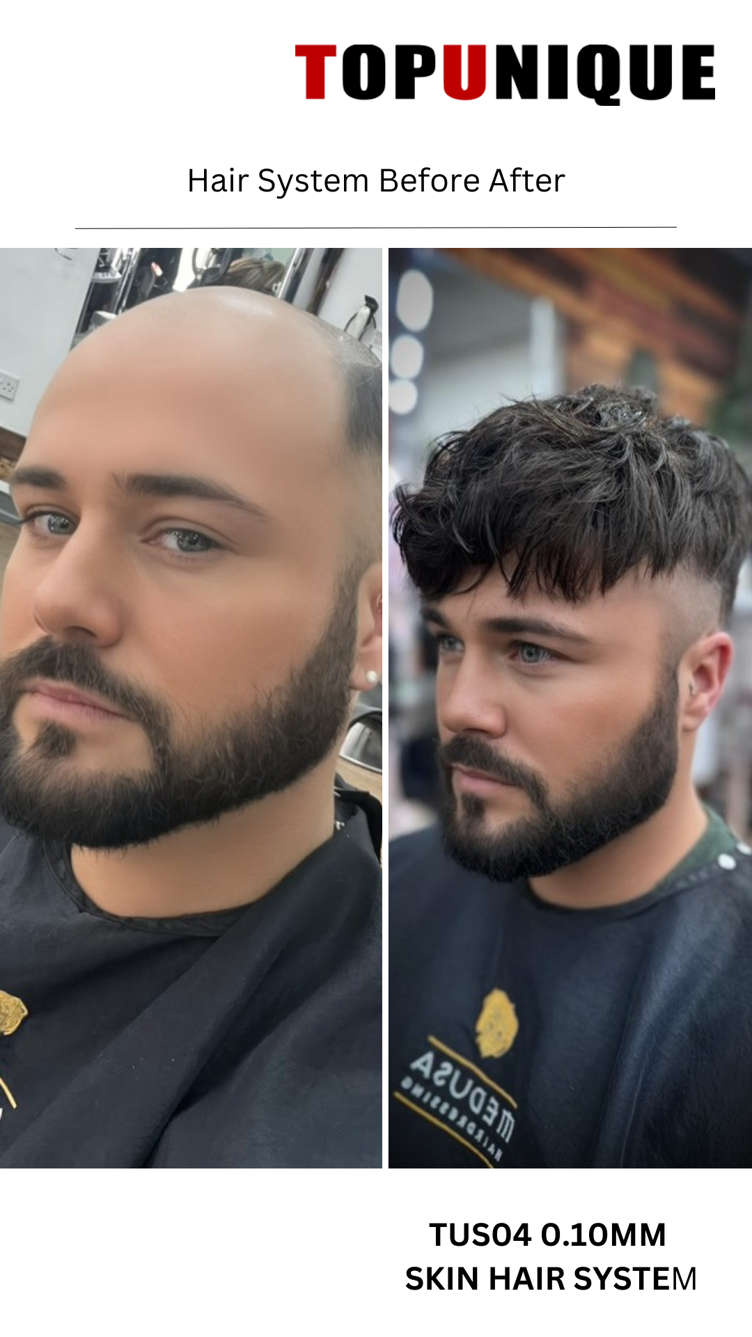 TUS04 Mens Hairpieces |0.10mm Skin with Full Hair | The Most Durable Among Skin Hair Systems
