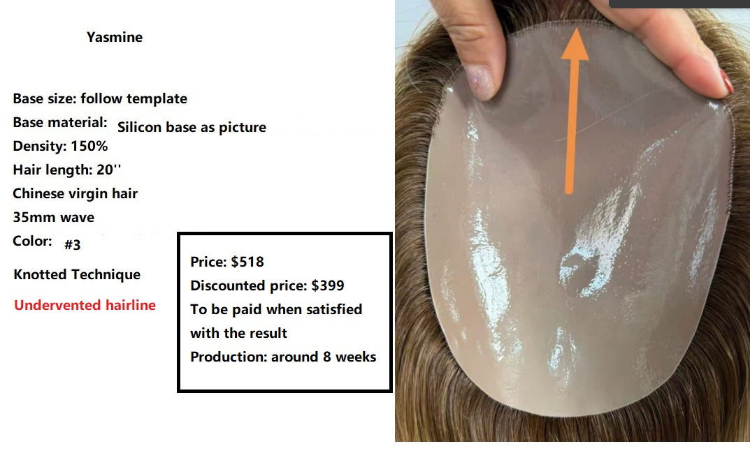 • The hair system is a stock item with no add-on services such as base cuts, haircuts, perming, or other modifications.
