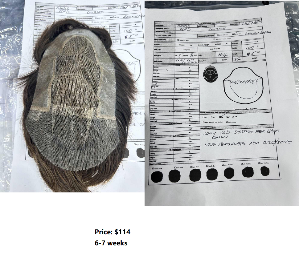 - The hair system is a stock item with no add-on services such as base cuts, haircuts, perming, or other modifications.