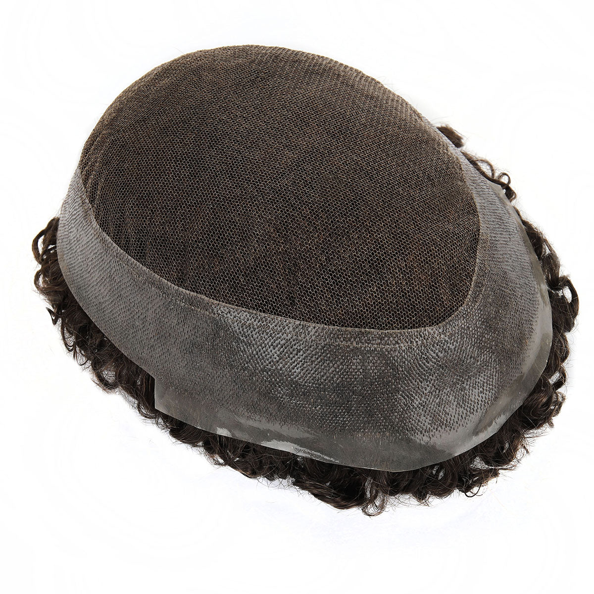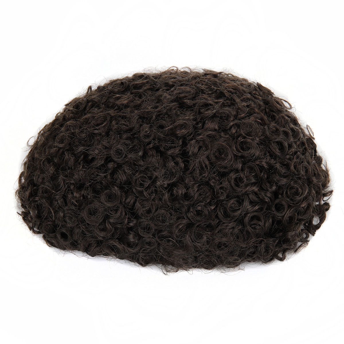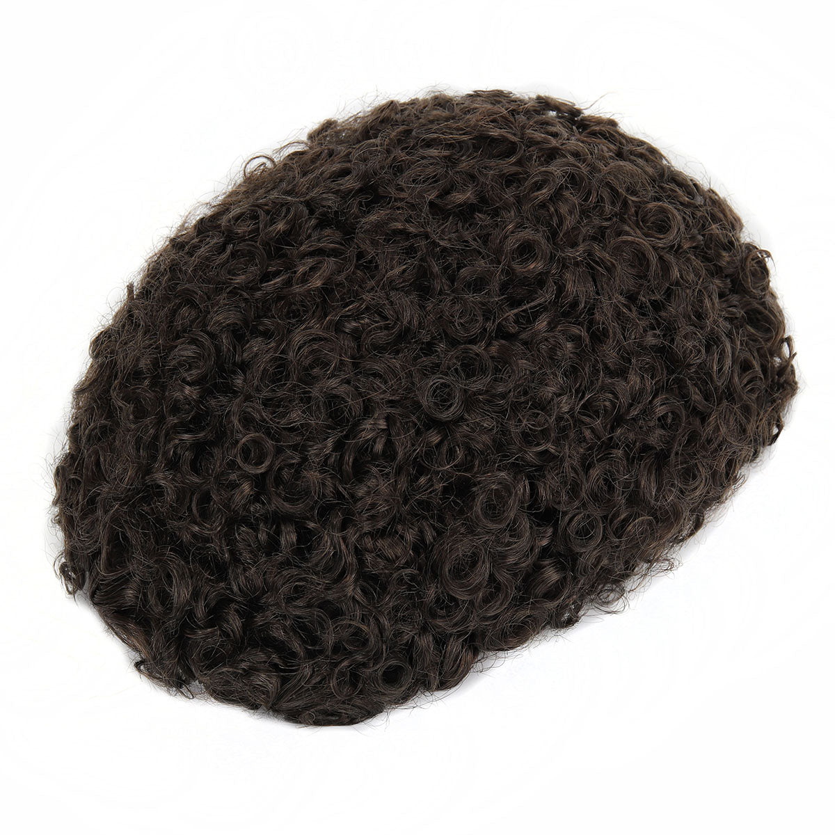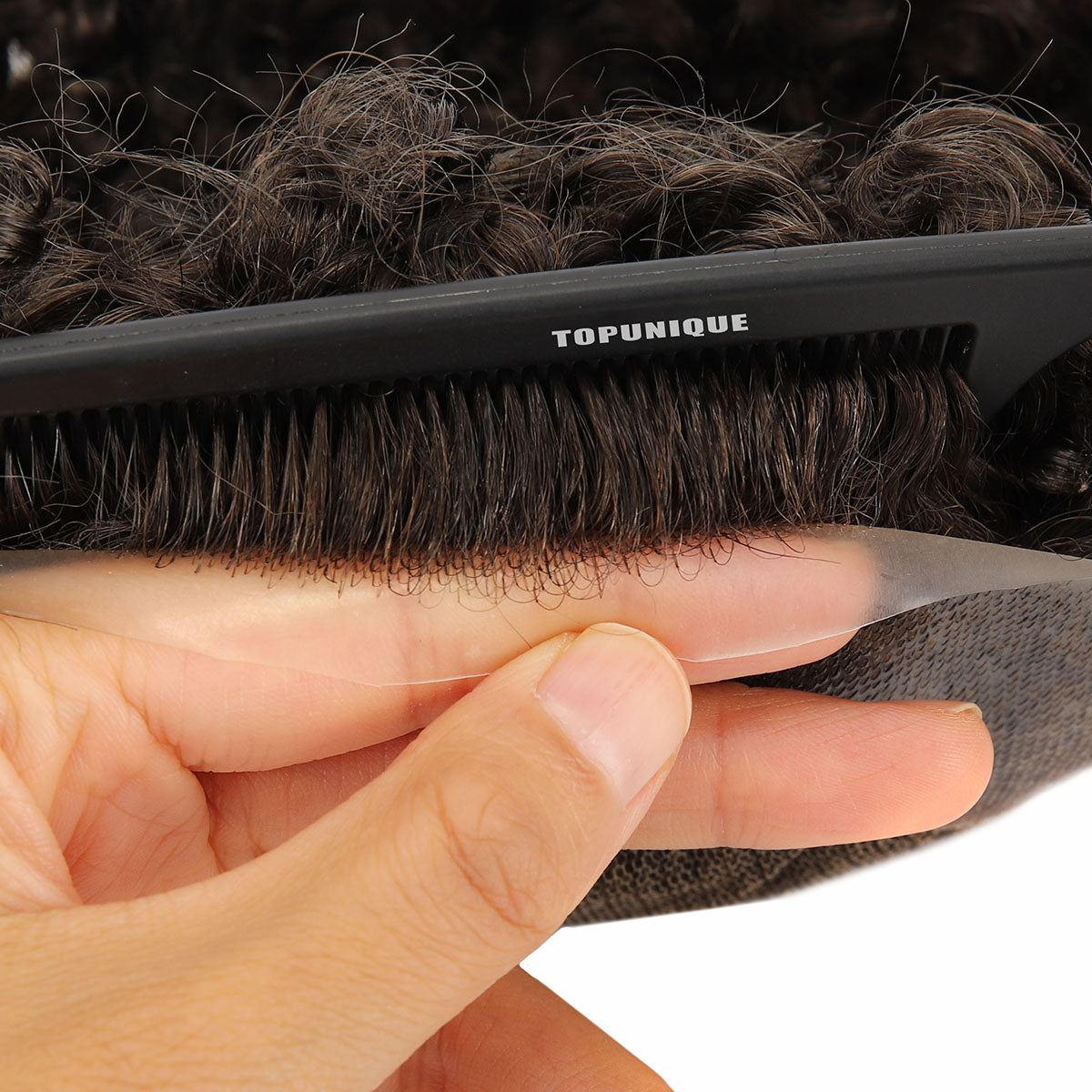 Peluquín rizado para hombre TUL14 | Rizo apretado de 15 mm | Base híbrida de encaje y perímetro de piel | Transpirable y duradero