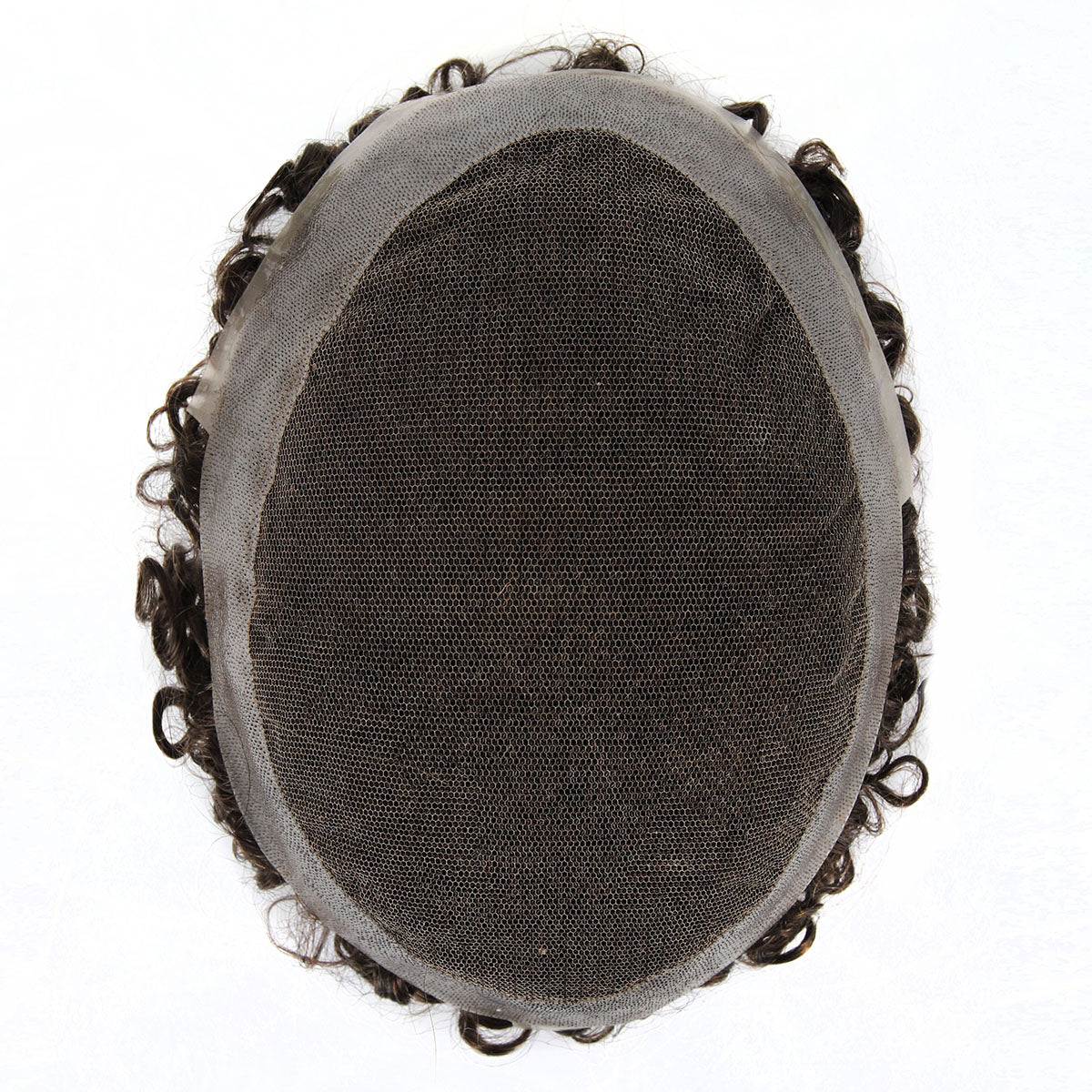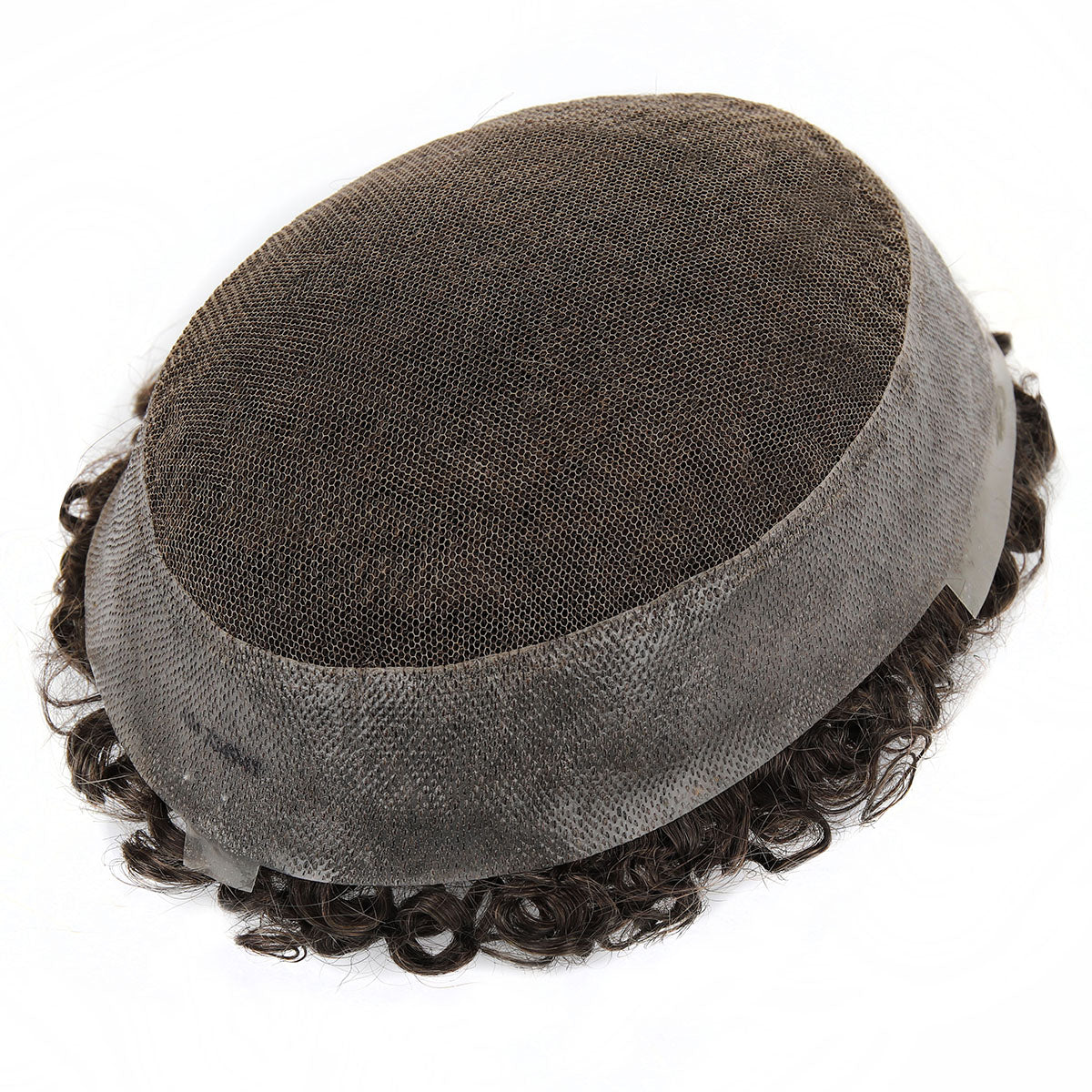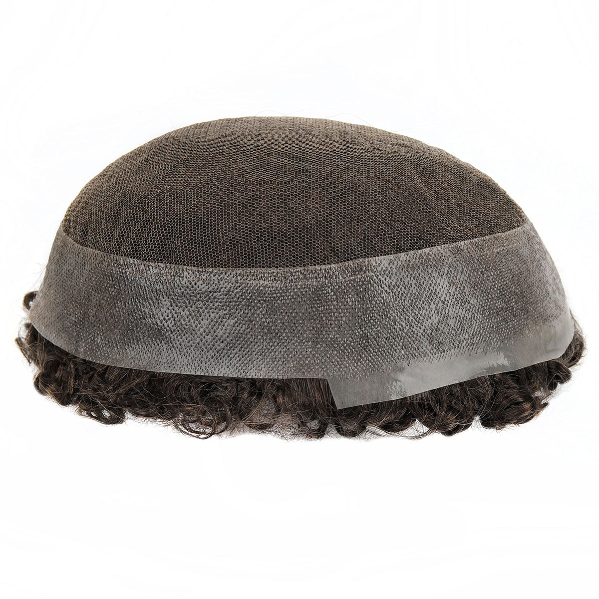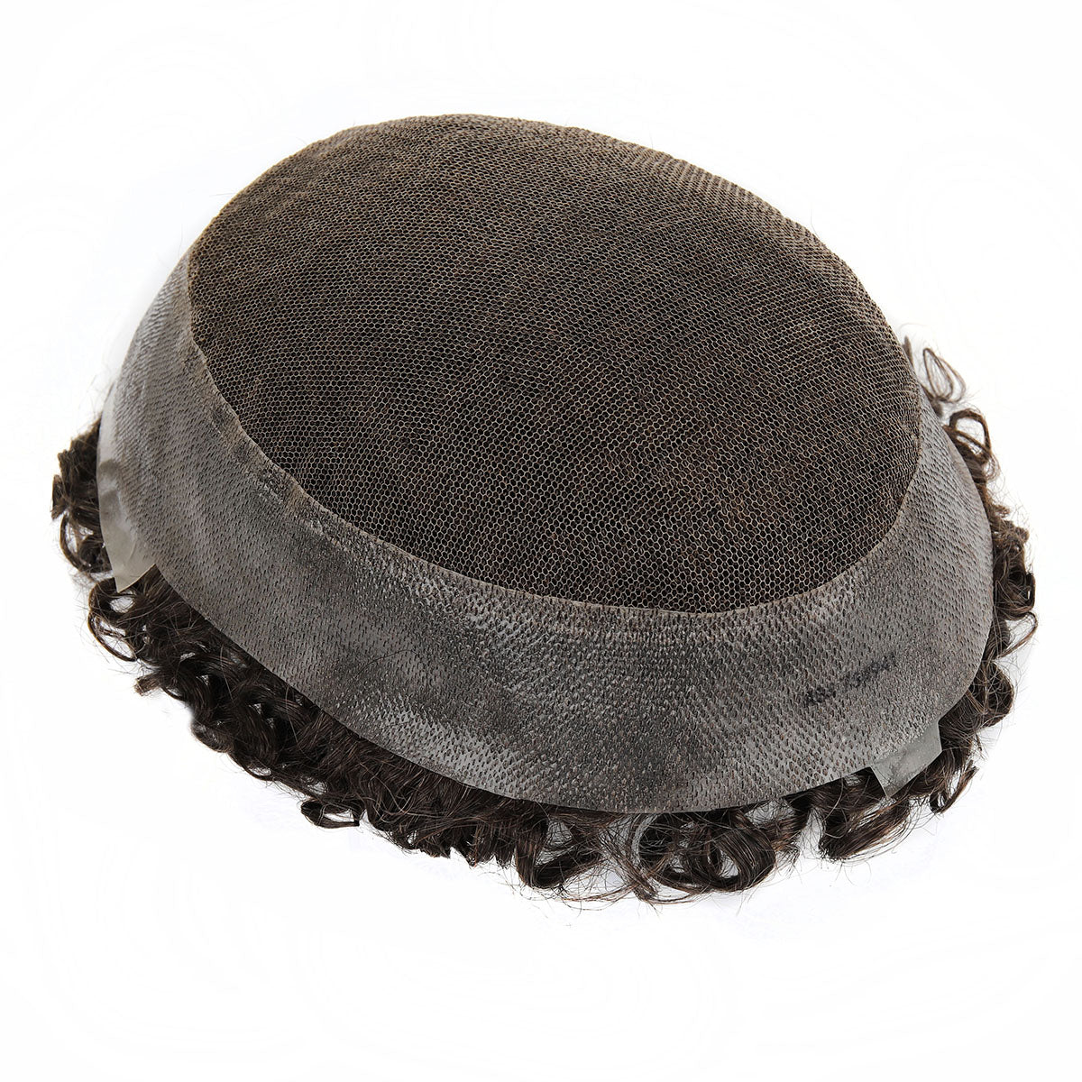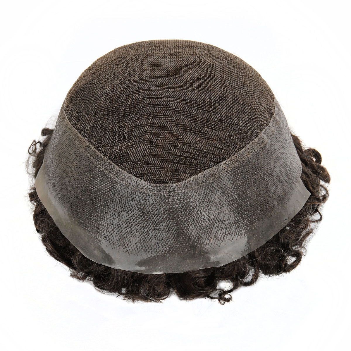 Peluquín rizado para hombre TUL14 | Rizo apretado de 15 mm | Base híbrida de encaje y perímetro de piel | Transpirable y duradero