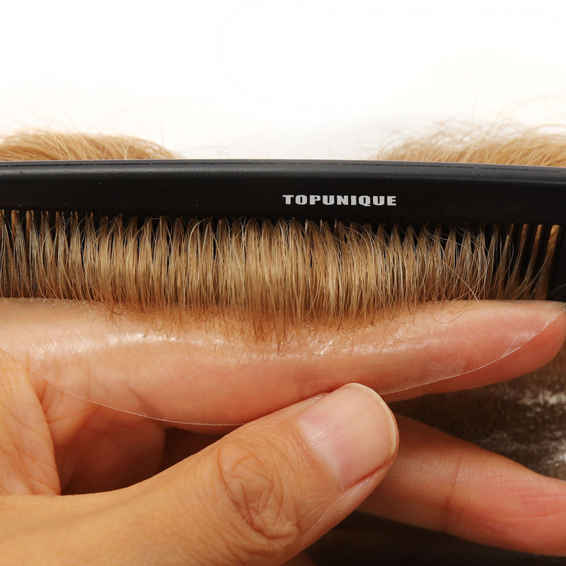 Extensiones de cabello para hombres TUS03 | Piel fina de 0,08 mm con técnica de un solo nudo | Muy duraderas