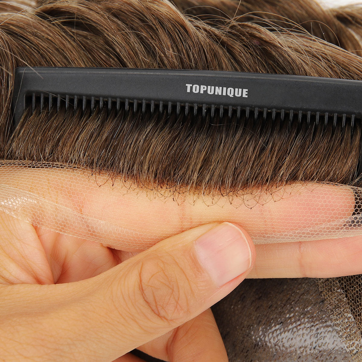 Toupee para hombres TUL09 | Base híbrida de encaje frontal de 1'' + piel en la parte posterior | Línea del cabello duradera y de aspecto natural