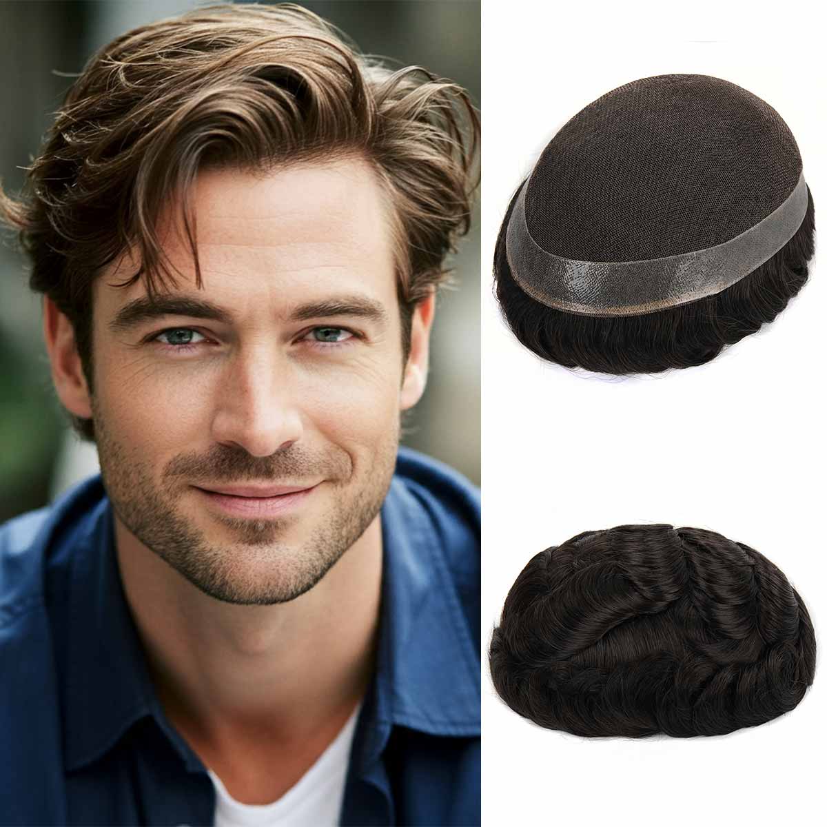 TUL07 Toupee | Cabello grueso para jóvenes | Base de PU y encaje transpirable, varios tamaños