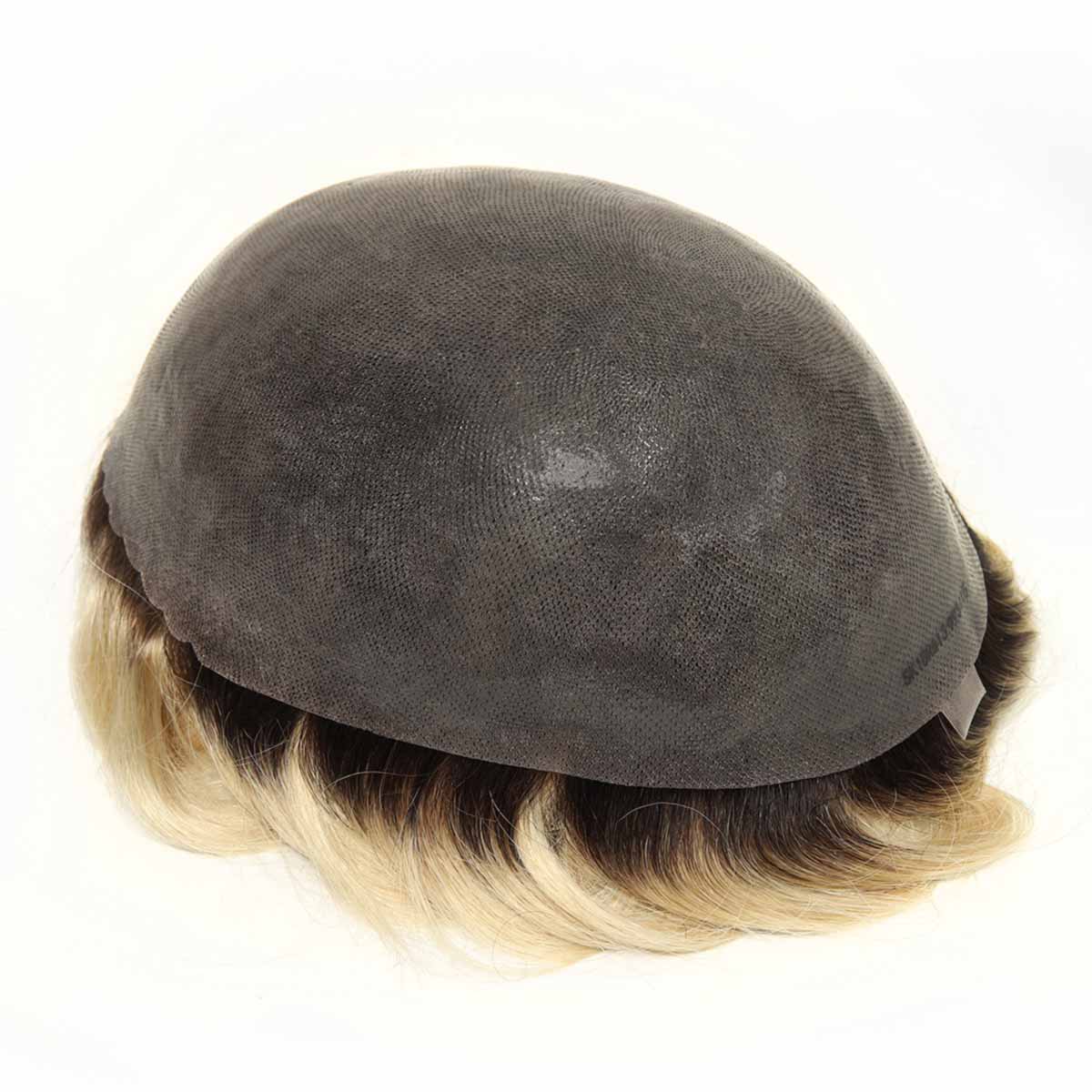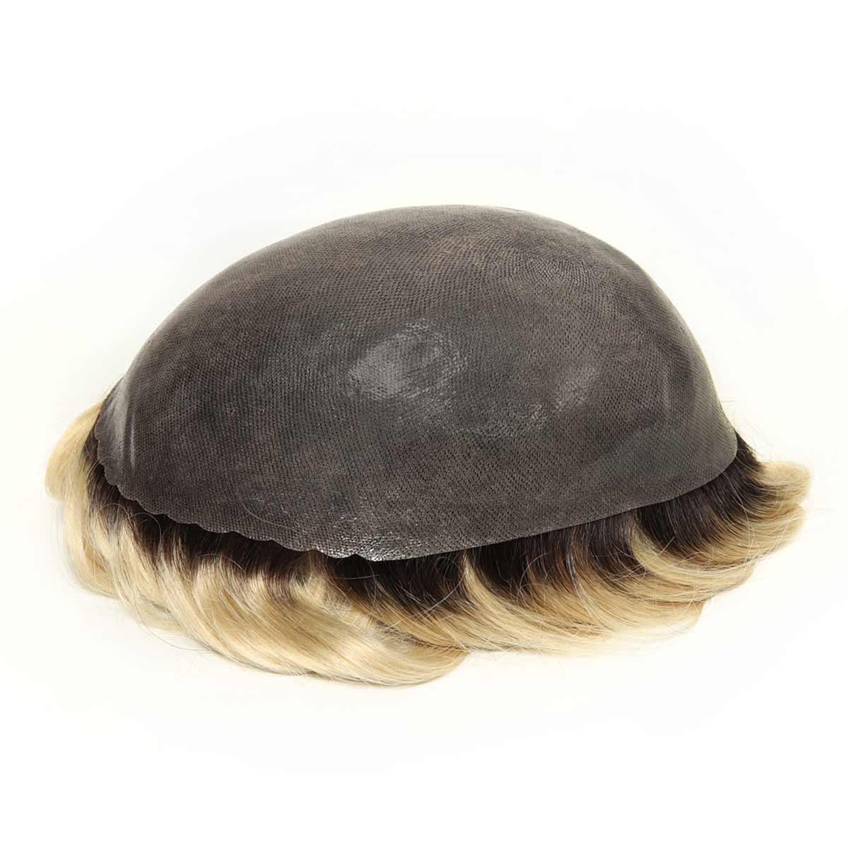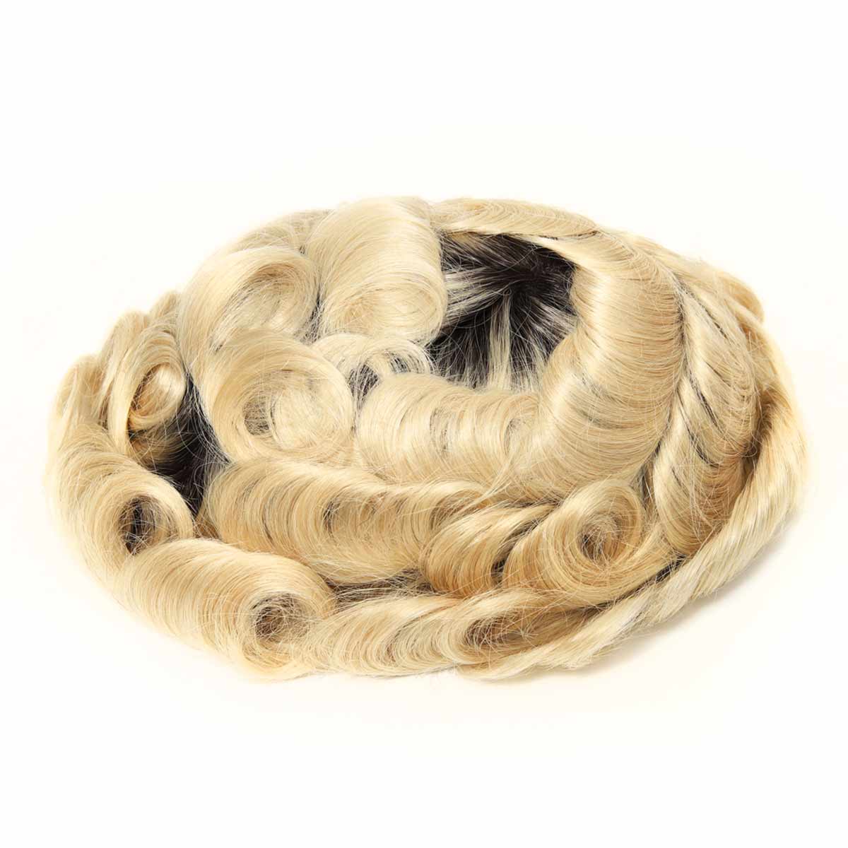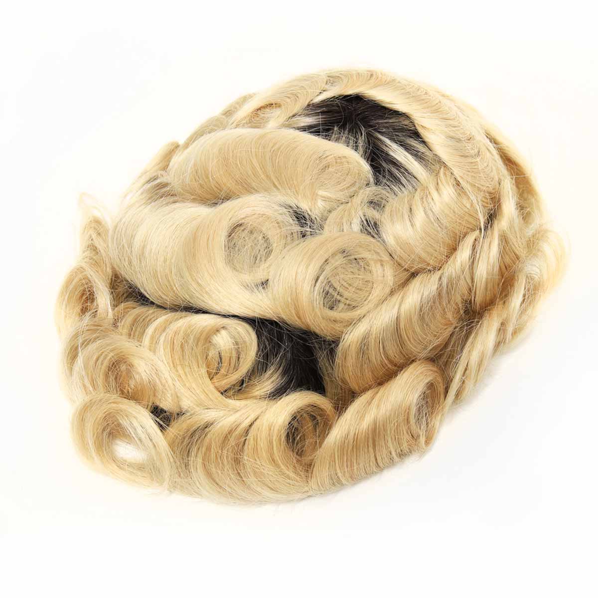 TUS22 Blonde and Dark Roots Toupee | Scallop Front Skin Hair Piece